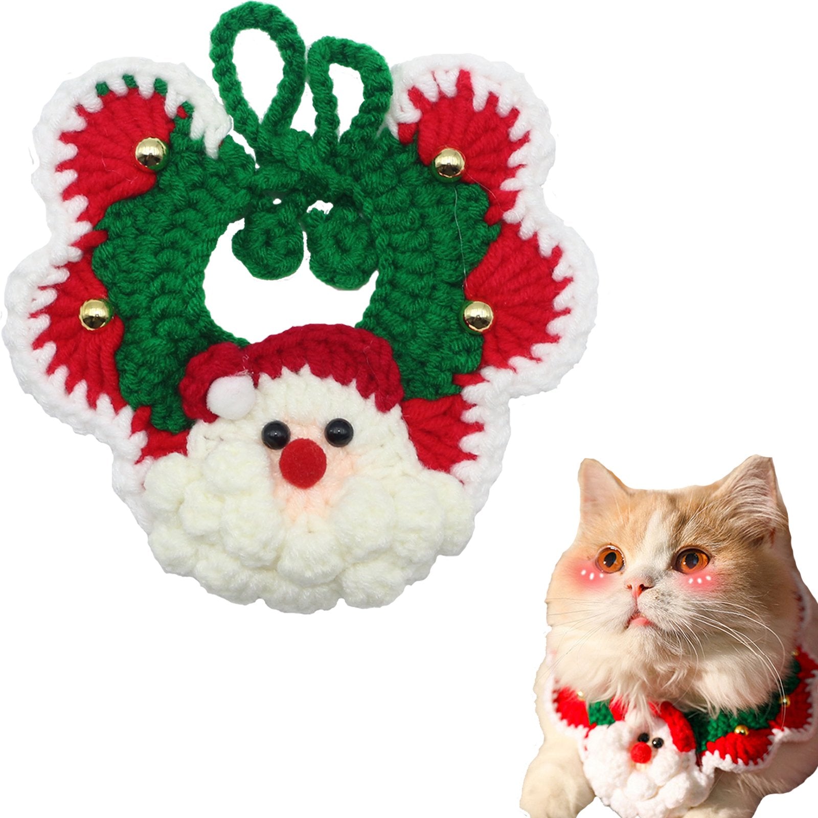 Uniqicon Santa Cat Hat Christmas Costume Dogs Hats Costumes Pets Scarf Outfit Xmas Suit Handmade Knitted Cosplay Pet Clothes Suitable for Large, Medium, and Small Breed